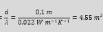 Hoeveel warmte je kunt tegenhouden met isolatie, is natuurlijk ook afhankelijk van de dikte ervan; een dikkere isolatielaag houdt meer warmte tegen dan een dunne laag. Dat is uit te drukken in de thermische weerstand van de isolatielaag, de RD-waarde. Die wordt berekend door de dikte van de laag te delen door de thermische geleidbaarheid (λ) ervan. Zo heeft een laag PIR (λ van 0,022 W m-1 K-1) van 10 centimeter dik een RD-waarde van: