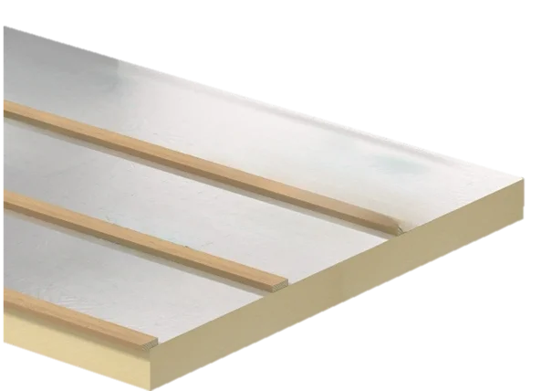 PIR Renovatieplaten zijn stevige schuimplaten waarop aan één zijde 3 latten zijn gelijmd. Deze platen hebben een kern zonder vezels en zijn voorzien van een rechte randafwerking. Beide zijden van de platen zijn bedekt met een aluminiumcachering.